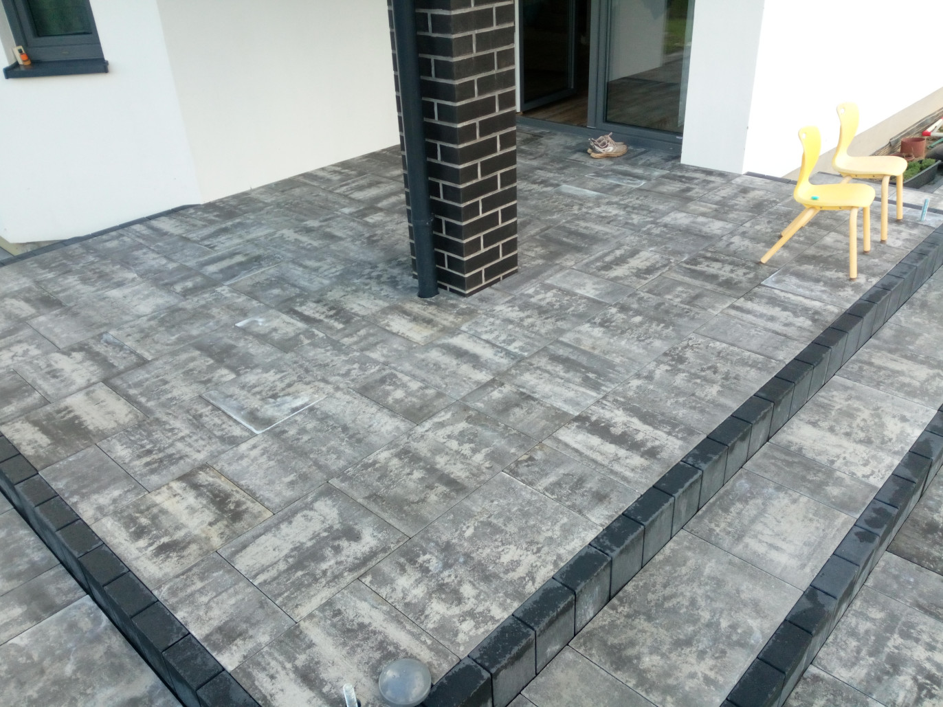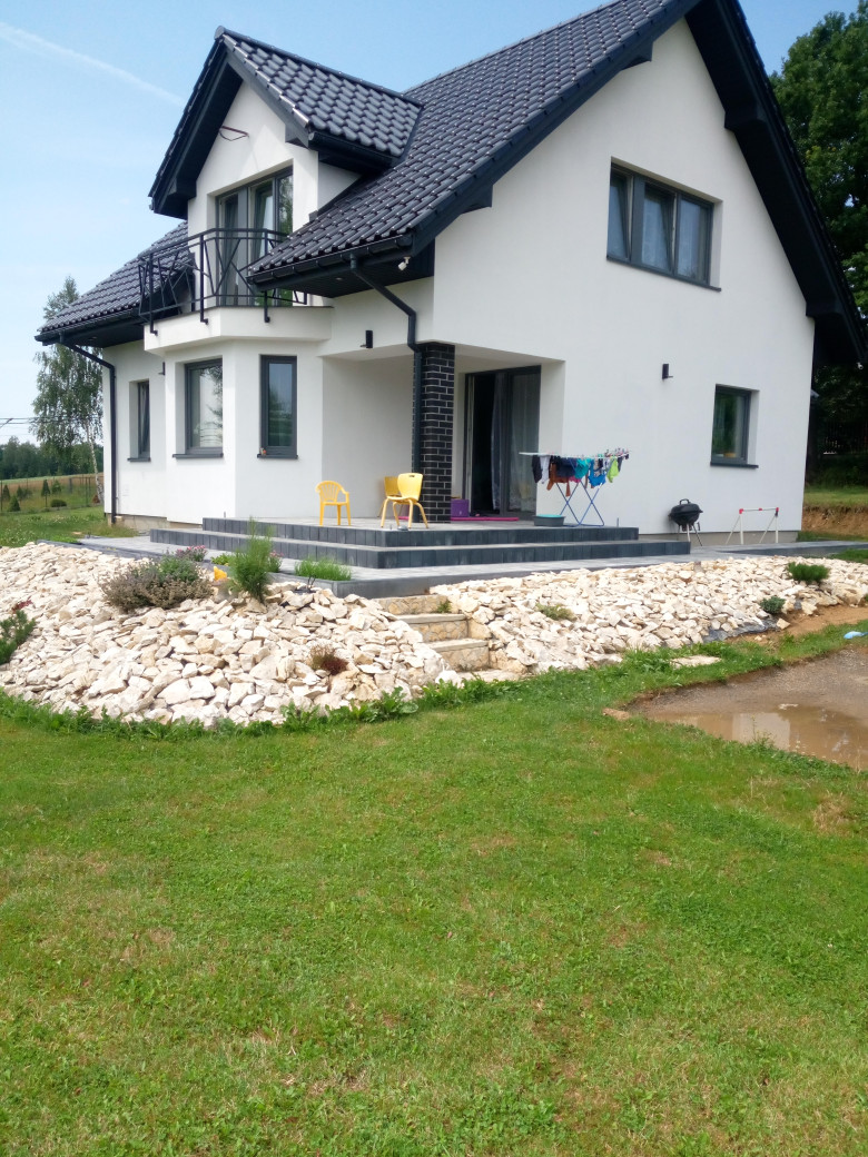 Wjechała podbitka z blachy w czarnym macie, wokół domu został zrobiony chodnik oraz taras z tyłu.